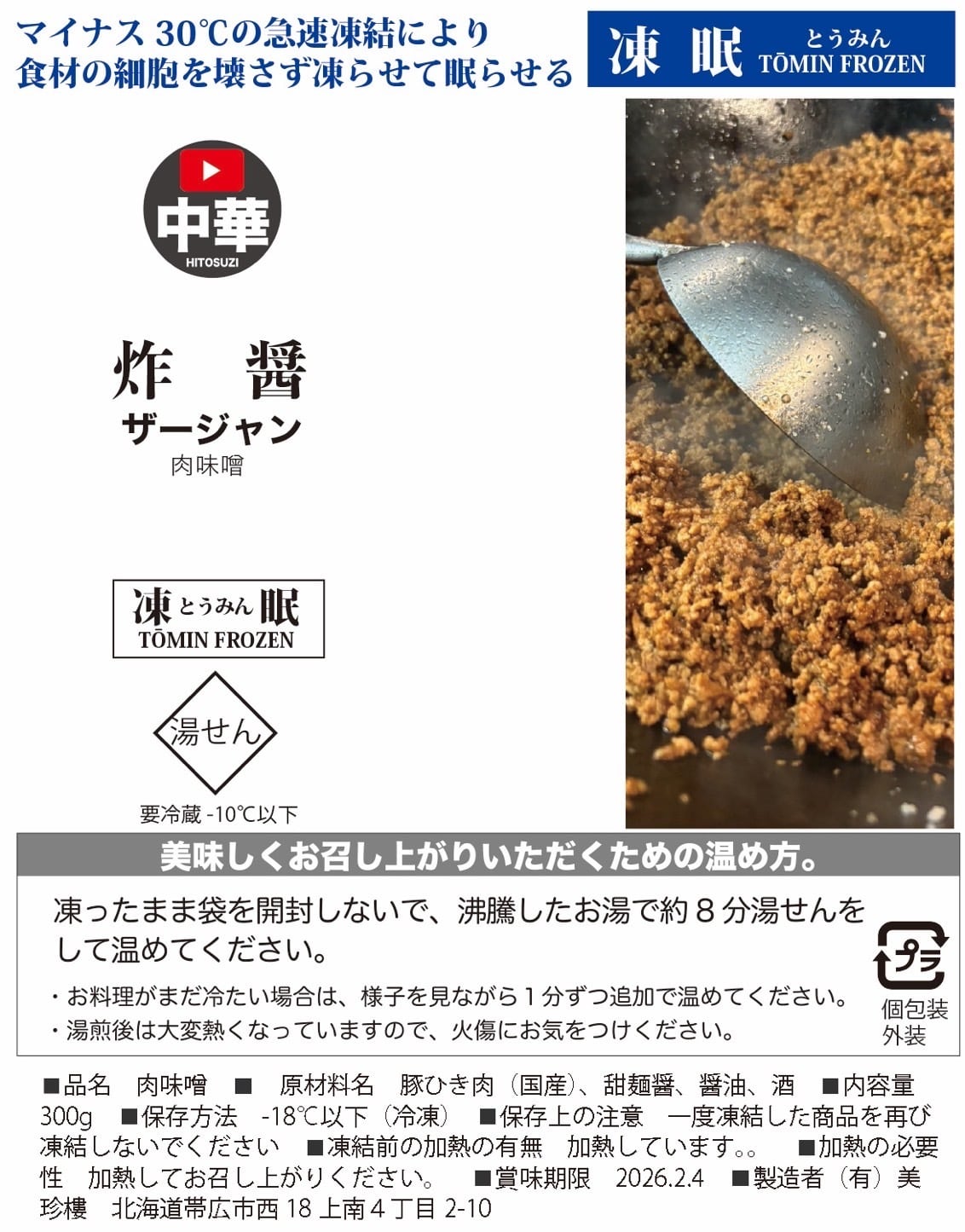 旨みたっぷりの炸醤をそのまま急速冷凍。